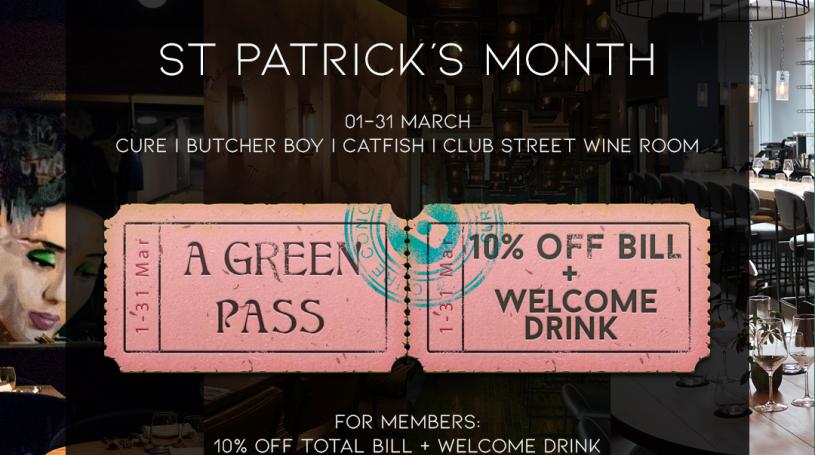 In celebration of St. Patrick's Day, Chef Andrew Walsh and his team at Cure Concepts are offering this year a 'Green Pass' for the month of March.